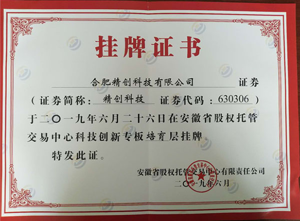 合肥精創(chuàng)科技有限公司于2019年6月26日在安徽省科創(chuàng)板掛牌:證券代碼:630306,熱烈祝賀公司發(fā)展上了一個新臺階!